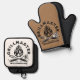 Ensemble De Gant De Cuisine Et De Manique GRILLMASTER Rustique Personnalisé Brown et blanc