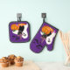 Montrez votre amour pour l'Halloween en décorant votre cuisine avec de mignons mitaines de four et porte-pot. Cet ensemble de cuisine est composé d'un fantôme, d'un chat noir, d'une Jack O'Lantern et de chauves-souris noires sur un arrière - plan violet. Achetez vous-même ou achetez ce set comme un ménage ou un autre cadeau d'occasion.