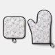 Ensemble De Gant De Cuisine Et De Manique Jolies Fleurs Bleues Blanches Élégantes