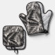 Ensemble De Gant De Cuisine Et De Manique Kona Palms Hawaiian Tropical Leaf Black