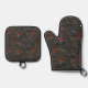 Ensemble De Gant De Cuisine Et De Manique Lave en fusion volcan rouge noir