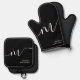 Ensemble De Gant De Cuisine Et De Manique Moderne Monogramme Script Calligraphie noir blanc