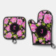 Ensemble De Gant De Cuisine Et De Manique Monogramme floral de pivoine rose