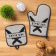 Ensemble De Gant De Cuisine Et De Manique Monogramme Nom Couteaux Chef Cuisinier Grillades