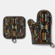 Ensemble De Gant De Cuisine Et De Manique Motif d'art Scratch du Sud-Ouest