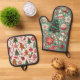 Ensemble De Gant De Cuisine Et De Manique Motif de Noël rouge et vert