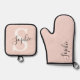 Ensemble De Gant De Cuisine Et De Manique Nom personnalisé moderne Monogram Pastel Rose