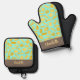 Gant de four et porte-pot à thème de cuisine raffinée, avec un motif italien de différentes formes de pâtes. Tous deux ont du texte personnalisable pour vous permettre d'ajouter votre propre nom ou message