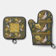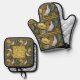 Ensemble De Gant De Cuisine Et De Manique Pigeon Blue Yellow Fish Art Nouveau