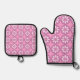 Ensemble De Gant De Cuisine Et De Manique Pink Blossom Retro Tile Pattern