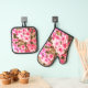 Ensemble De Gant De Cuisine Et De Manique Pink Floral Bloom Pattern