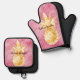 Ensemble De Gant De Cuisine Et De Manique Pink Glam Stripes Gold Tropical Pineappy