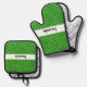 Ensemble De Gant De Cuisine Et De Manique Pointe Polka verte et blanche personnalisée