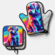 Ensemble De Gant De Cuisine Et De Manique Rainbow Hug Dog Art