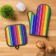 Ensemble De Gant De Cuisine Et De Manique Rayures arc-en-ciel