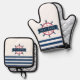 Ensemble De Gant De Cuisine Et De Manique Roue nautique, Bleu de la Marine