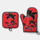 Ensemble De Gant De Cuisine Et De Manique Rouge floral noir