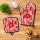 Ensemble De Gant De Cuisine Et De Manique Rouge rose Abstrait brosses Motif Monogramme