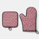 Ensemble De Gant De Cuisine Et De Manique Sayagata motif, japonais, bourgogne et blanc