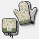 Ensemble De Gant De Cuisine Et De Manique Soft Mint Green Garden Motif