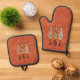 Ensemble De Gant De Cuisine Et De Manique Trois Chats Boho Orange