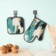 Ensemble De Gant De Cuisine Et De Manique Turquoise Vert Or Noir Blanc