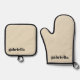 Ensemble De Gant De Cuisine Et De Manique Typographie en gras noir et beige Nom personnalisé