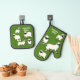Ajoutez votre propre message pour créer un adorable cadeau personnalisé. Qu'il s'agisse d'un fermier qui élève des moutons ou d'une personne qui aime les moutons et les autres animaux de ferme, ils apprécieront certainement les illustrations du mouton noir et blanc du Valais Blaccé sur ce potier de cuisine et son ensemble de mitt de four. Les graphiques sont positionnés contre un arrière - plan vert herbe avec votre texte personnalisé en caractères blancs gras sur le mitt et le porte-pot.