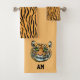 Ensemble serviette de bain élégant et beau visage de tigre animal et monogramme.