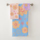 Ensemble De Serviettes De Bain Retro À Motif Floral Doux. Le mélange et la combinaison de couleur bleu doux avec d'autres couleurs douces apaisantes de rose et de violet, parfait pour ceux qui sont girly et féminine. Joli et romantique avec le motif rétro orangé de fleurs de couleur orange.