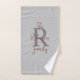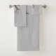 Cet ensemble unique et personnalisé de serviette de bain, serviette de toilette et gant de toilette est orné d'un fond gris clair, d'un monogramme gris moyen classique et du nom de famille en écriture calligraphique burgundy. C'est un design moderne, contemporain et tendance minimaliste. Il est facile à personnaliser, il suffit de changer ou de supprimer le monogramme et le nom de famille exemples. Vous pouvez acheter l'ensemble ou des articles individuels. Tous droits réservés © 2024 Alan & Marcia Socolik.
