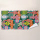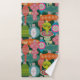 Ce kit de serviettes est muni d'un linge vert pois, d'une serviette à main orange et d'une serviette de bain avec un design de Noël d'un mélange de divers ornements dans de nombreuses couleurs.