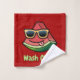 Caricature mignonne. Trancher de pastèque avec lunettes de soleil. Motif sans couture. Texte personnalisé sur chaque serviette.