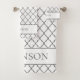 Cette serviette de bain géométrique personnalisée peut être customisée avec votre nom de famille.