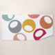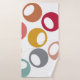 Ce kit de serviettes est doté d'un linge de toilette rose poussiéreux, d'une serviette bleue poussiéreuse et d'une serviette de bain au design moderne du milieu du siècle avec des cercles dans les tons rétro de bleu, violet, rose, marron, citron vert et or avec des ovales blancs.