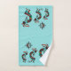 Décorez votre salle de bain avec cet ensemble unique de serviettes de bain Kokopelli Sud-Ouest "One of a Kind" ! Trois Kokopelli du sud-ouest jouent de la Flûte et dansent sous le soleil sur un Arrière - plan turquoise!