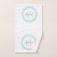 Ajoutez une touche élégante à votre décor de bain avec un ensemble de serviettes de toilette Circle Monogram Turquoise. Le design des serviettes est composé d'un cercle décoratif qui peut être personnalisé avec votre nom et monogramme. Autres cadeaux disponibles avec ce design aussi. Si vous avez besoin d'aide pour la personnalisation, veuillez me contacter directement.