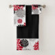 Cet élégant ensemble de serviettes de trois pièces dispose d'un motif de fleurs graphiques noir, gris, blanc et rouge comme arrière - plan. La grande serviette de bain est en noir massif, avec le motif de fleurs comme bordure du fond. La serviette de bain et le linge de toilette ont la motif, et contraste magnifiquement avec la serviette de bain. Très spectaculaire, avec un peu de couleur ! Assurez-vous de voir les produits de décoration maison assortis dans notre magasin. *Crédit pour design graphique à Malachi Designs on Etsy.