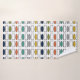 Ce kit de serviettes est doté d'une serviette de bain au design moderne du milieu du siècle avec des rectangles et ovales répétitifs aux couleurs rétro, un linge rouge et une serviette à main turquoise.