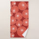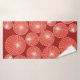Cet ensemble de serviettes a un design moderne du milieu du siècle de cercles rouges avec des éclats blancs, le tout sur un champ de brique.