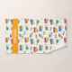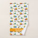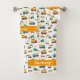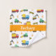 Motif de véhicules de construction colorés pour le petit bâtisseur ! Le motif est composé de nombreux éléments de construction tels qu'un camion à benne rouge et jaune transportant les débris, une excavatrice orange, un chargeur frontal vert poussant de la terre, un mélangeur à béton bleu et jaune, des cônes orange et blancs et une barrière de zone de construction jaune et noire. Parfait pour les garçons qui aiment les véhicules de construction, les jouets et les machines ! Personnalisez avec le nom de l'enfant.