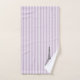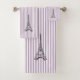 Profitez de nos serviettes de bain beige violet et blanc rayé.