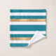 Serviette de bain turquoise, blanche et dorée moderne, avec un motif rayé horizontal audacieux. Plaque décorative turquoise et or, avec un monogramme personnalisé blanc une lettre. Personnalisez la lettre en fonction de vos besoins. Un décor de bain à remous est disponible.