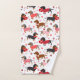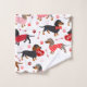 De mignons chiens de dachshund Valentine avec des manteaux noirs, bronzés et dapple habillés en motif mignon de la Saint Valentin avec des flèches et des pions de cupide.