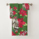 Joyeuses fêtes, art husky et fleurs Poinsettia sur le kit de serviettes de bain.