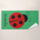 Serviette de plage design Ladybug avec couleur et texte arrière - plan personnalisable.