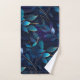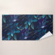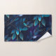 Une belle serviette avec serviette de bain, serviette de toilette et serviette de bain, qui a un motif de feuilles brillants en bleu.