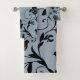 Ce somptueux ensemble de serviettes de bain fleuris présente un motif extensible d'une rose rouge écarlate parfaite avec trois feuilles verts contre un arrière - plan noir.