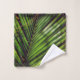 L'image tropicale verte de ce Serviette est une photo originale d'une façade de palmier royal profitant de la lumière du soleil. Quelques aiguilles de pin ont atterri sur la fronde, ajoutant aux courbes de l'image, avec des ombres bizarrement façonnées des branches et des vignes au-dessus.