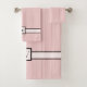 Ajoutez un peu de swank à votre style avec ce motif simple mais classique à rayures pinstripe avec une base rose pastel douce et une bande d'accent noir onyx profond. Customisez le monogramme sur la main et la serviette de bain pour une décoration unique pour votre salle de bain. Ces articles peuvent être achetés en tant qu'assortiment ou en tant que pièces individuelles.